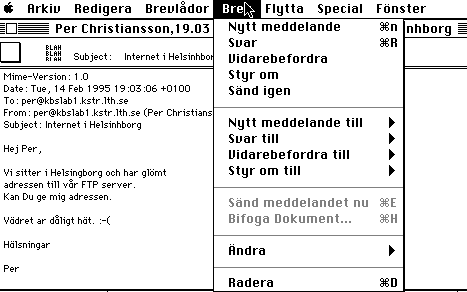 Vid föreläsning har visats hur man sänder och svarar på email med hjälp av ett POPmail program. Under kursen kommer Du att ha tillgång till programmet Eudora.