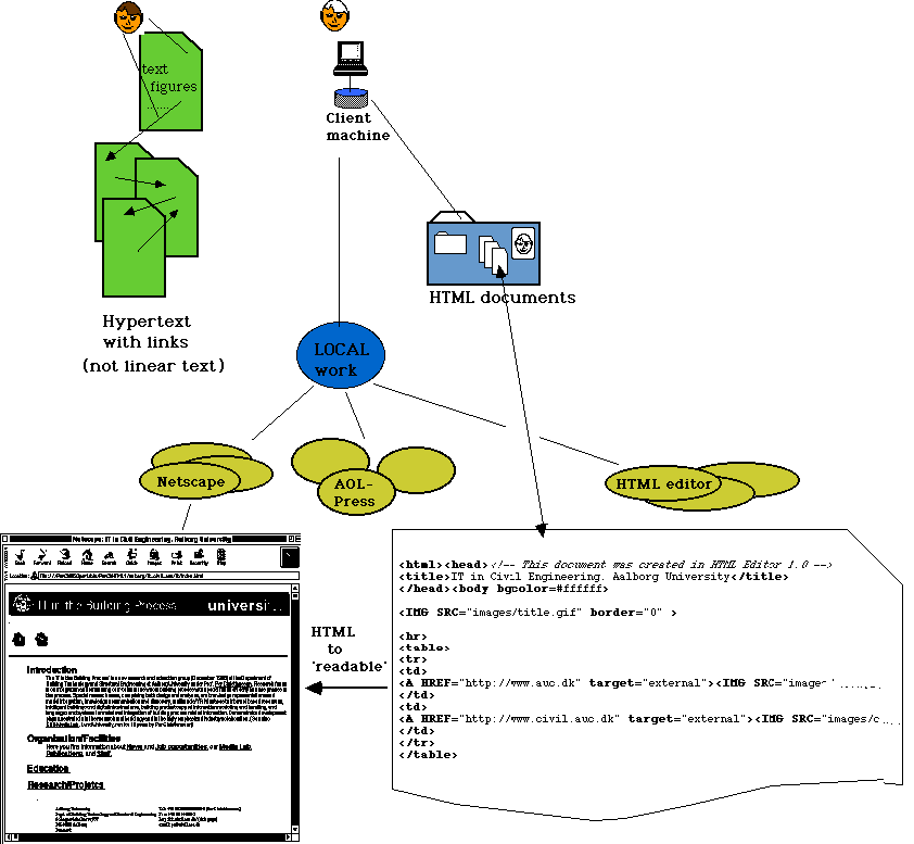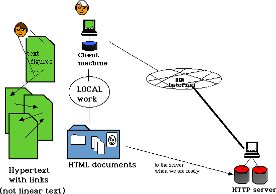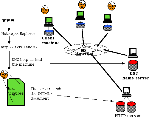 - Your machine contain the client software (Netscape, Explorer). The server contain HTML-documents (HyperText Markup Language) which