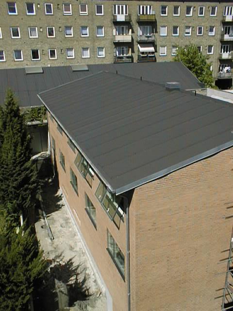 På billedet herover ses bygning B fra oven. Bygning B er interessant, idet solfangerne der arbejdes med i projektet lægges på tagfladen der ses på billedet. Billedet er taget mod vest.
