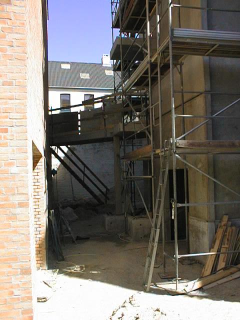 På billedet ses mellemrummet mellem bygning B og trappetårnet. Billedet er taget mod nord-øst.