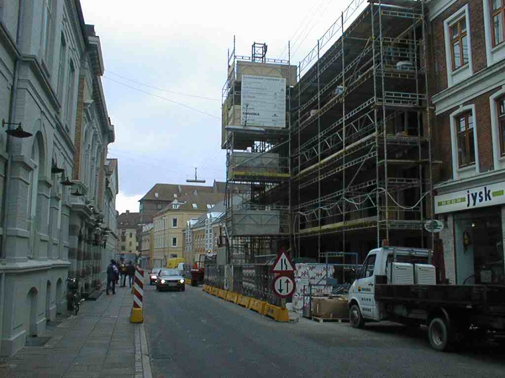 Billedet herover er taget i Jernbanegade mens byggeriet stod på.