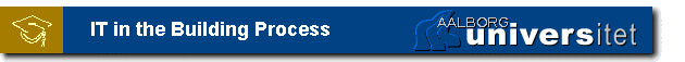 IntroductionWelcome presentation. The 'IT in the Building Process' was introduced at semester 6 spring of the M.Sc. and B.Sc. education levels at Aalborg University. IT in the Building process can be further studied during semester 7 and semester 8 in the "Master of IT and Building Management" education. Feed-back during the course can contribute to smaller changes of the content of the current course. The semester 6 project work shall be documented and made accessible from the World Wide Web. This PE (Project Unit) course will give the background for digital project documentation used both as communication and decision tool in the design process and for storage of the project information. Det overvejes, hvordan tidssvarende informationsteknologi (IT) med fordel kan anvendes i projektets levetid. Der udarbejdes bl.a.: