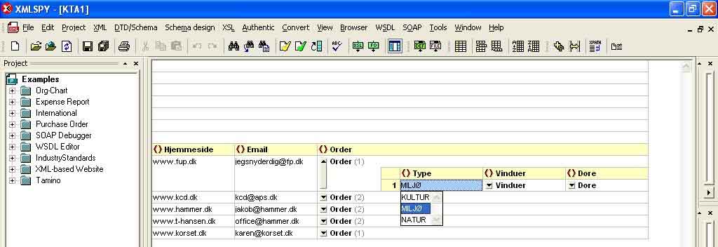 Figur 1.7 XML dokumentet udfyldes. Herefter udfyldes ordrene ved at vælge en af de prædefinerede valgmuligheder jf. figur 1.8, figur 1.9 og figur 1.10. Da der er tale om en "en til mange" relation er der mulighed for at tilføje flere ordre til samme kunde.