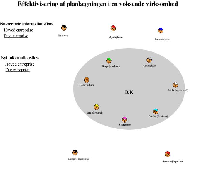 Som eksempel på Informations og kommunikations værktøjer, der er med til at gøre samarbejdet mellem forskellige partere lettere kan nævnes Peer to Peer (Kazaa), Instant Messanger, IFC- Standard, database.