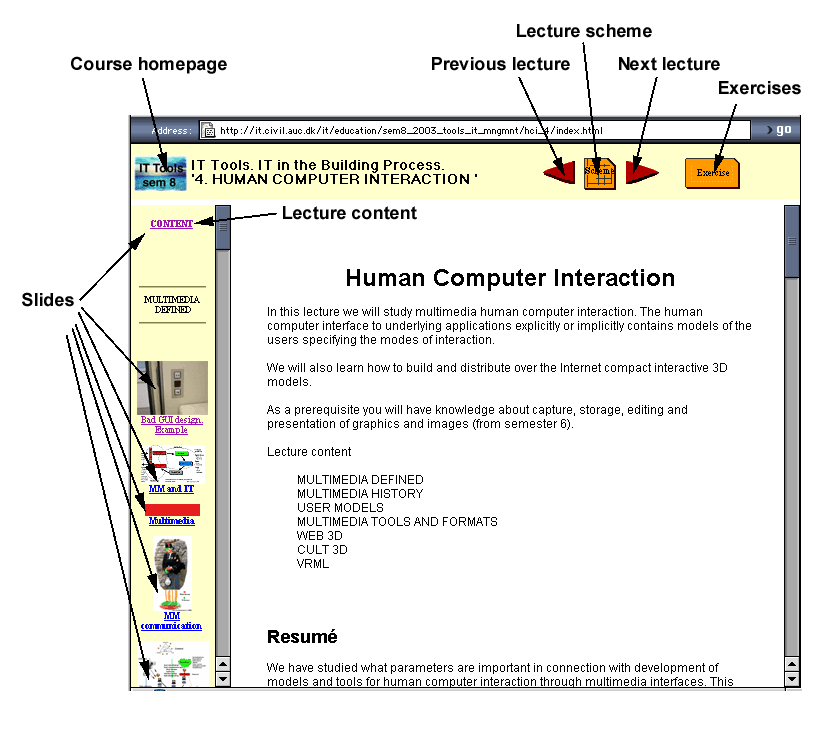 Værktøjer for grafisk editering, Multimedia (MM) design og Human Computer Interaction (HCI). Digital video og interaktiv story telling samt web-baserede 3D modeller.
