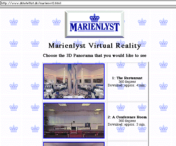 ![]() Click on the image for a high [4.9 Mb] resolution interactive harbour image or here for low [1.7 Mb] resolution. See also another example from Aalborg sea side (October 1999). High resolution (1.3 Mbytes) and low resolution (0,.5 Mbytes). This sequence (244 kbytes) from the KBS-Media Lab in Lund was simply created using a video images which was fitted together on Adobe Photoshop using layer technique. A QTVR movie was then cretaed from the PICT file with a shareware program. (see the links above).