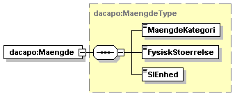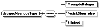 | source | <xs:complexType name="MaengdeType"> <xs:sequence> <xs:element name="MaengdeKategori"> <xs:simpleType> <xs:restriction base="xs:string"> <xs:maxLength value="10"/> </xs:restriction> </xs:simpleType> </xs:element> <xs:element name="FysiskStoerrelse" type="xs:decimal"/> <xs:element name="SIEnhed" type="dacapo:SIEnhed"/> </xs:sequence> </xs:complexType> |