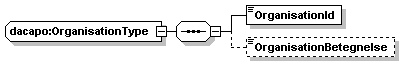 | source | <xs:complexType name="OrganisationType"> <xs:sequence> <xs:element name="OrganisationId"> <xs:simpleType> <xs:restriction base="xs:string"> <xs:maxLength value="10"/> </xs:restriction> </xs:simpleType> </xs:element> <xs:element name="OrganisationBetegnelse" type="dkcc:OrganisationNameType" minOccurs="0"/> </xs:sequence> </xs:complexType> |