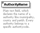 | source | <xs:element name="AuthorityName" type="cpr:AuthorityNameType"> <xs:annotation> <xs:documentation>Plain text field, which declares the name of a authority like municipality, county and parish. Every authority belongs to a specific authoritycode. </xs:documentation> </xs:annotation> </xs:element> |