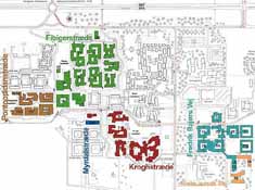 Aalborg University (yellow dots). (6) Building dept., (4) VR Media Lab, red dot (b) SAS/Radison.