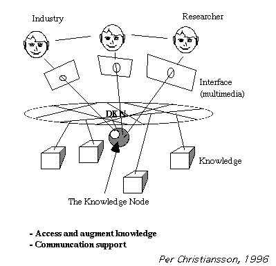 A Knowledge Node is kind of high level processing unit and today equal to an URL, Uniform Resource Locator, on the Internet. A knowledge node, [3], has three main functions (a) dissemination of information on request or automatically channeled, (b) two way communication and feed-back capabilities through multimedia interfaces, and (c) access to a local knowledge bank and possibly meta knowledge about other knowledge nodes, see figure 4. The Merkurius and Serfin systems described above are example on Knowledge Nodes.