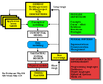 I figuren ses sambanden mellan de olika stegen i modelleringsaktiviteterna fram till slutlig inläggning av systemet. Det konceptuella modelleringsarbetet tar lika lång tid som den egentliga datorimplementeringen.